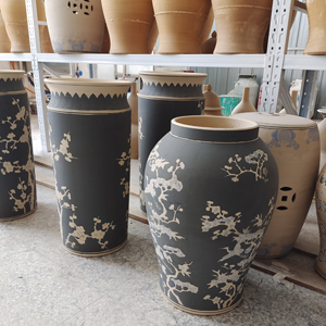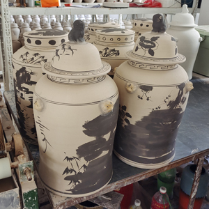 and white ceramic vases, underglazed vases / jars of