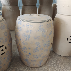 different colors, porcelain pots, ceramic drum stools, fish